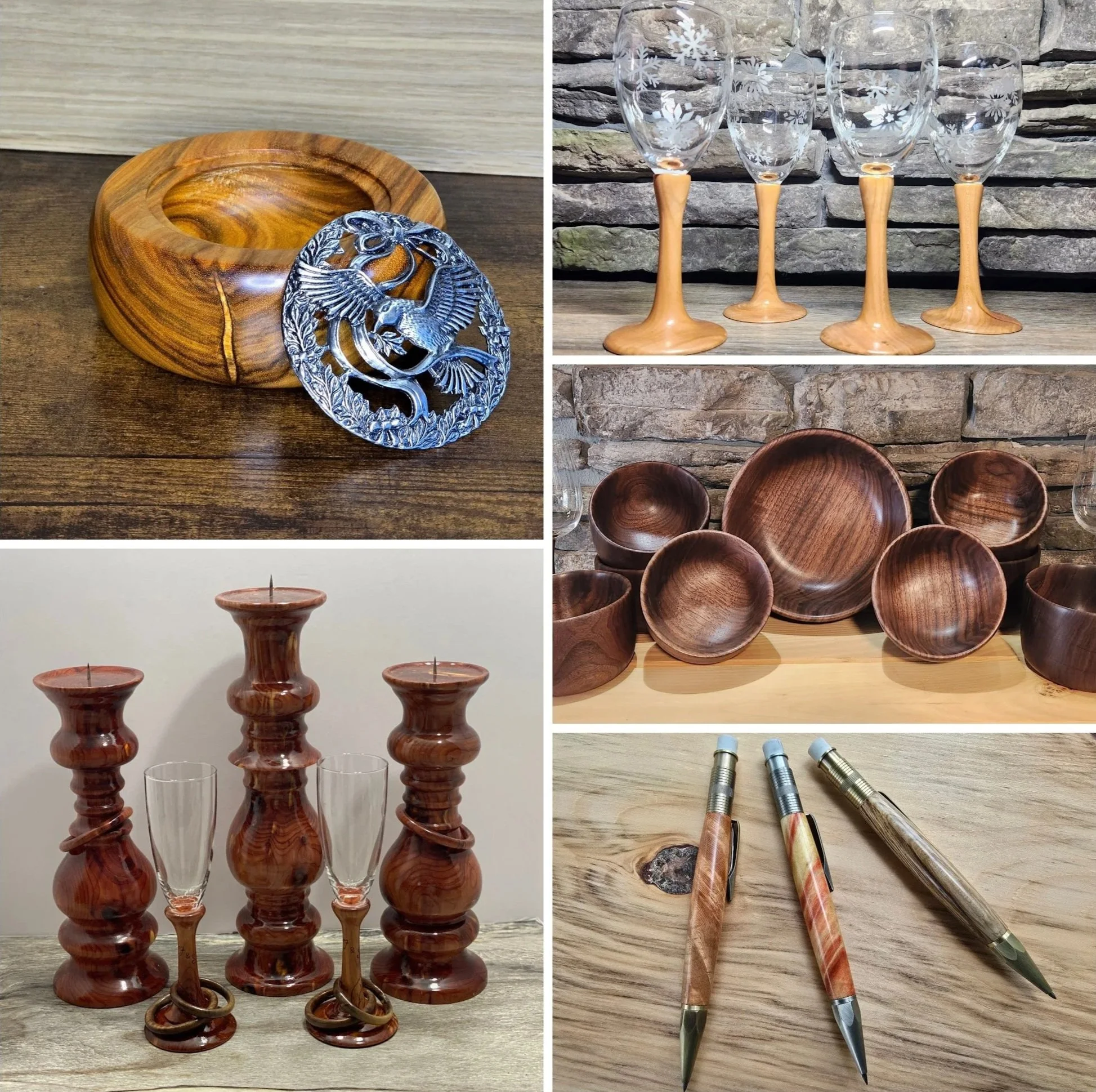 From elegant pens and handcrafted bowls to one-of-a-kind vases, wood-stemmed wine glasses, and more, each piece is made with attention to detail and a deep respect for the natural beauty of wood. We always have a variety of creations available and welcome custom orders to bring your vision to life.
